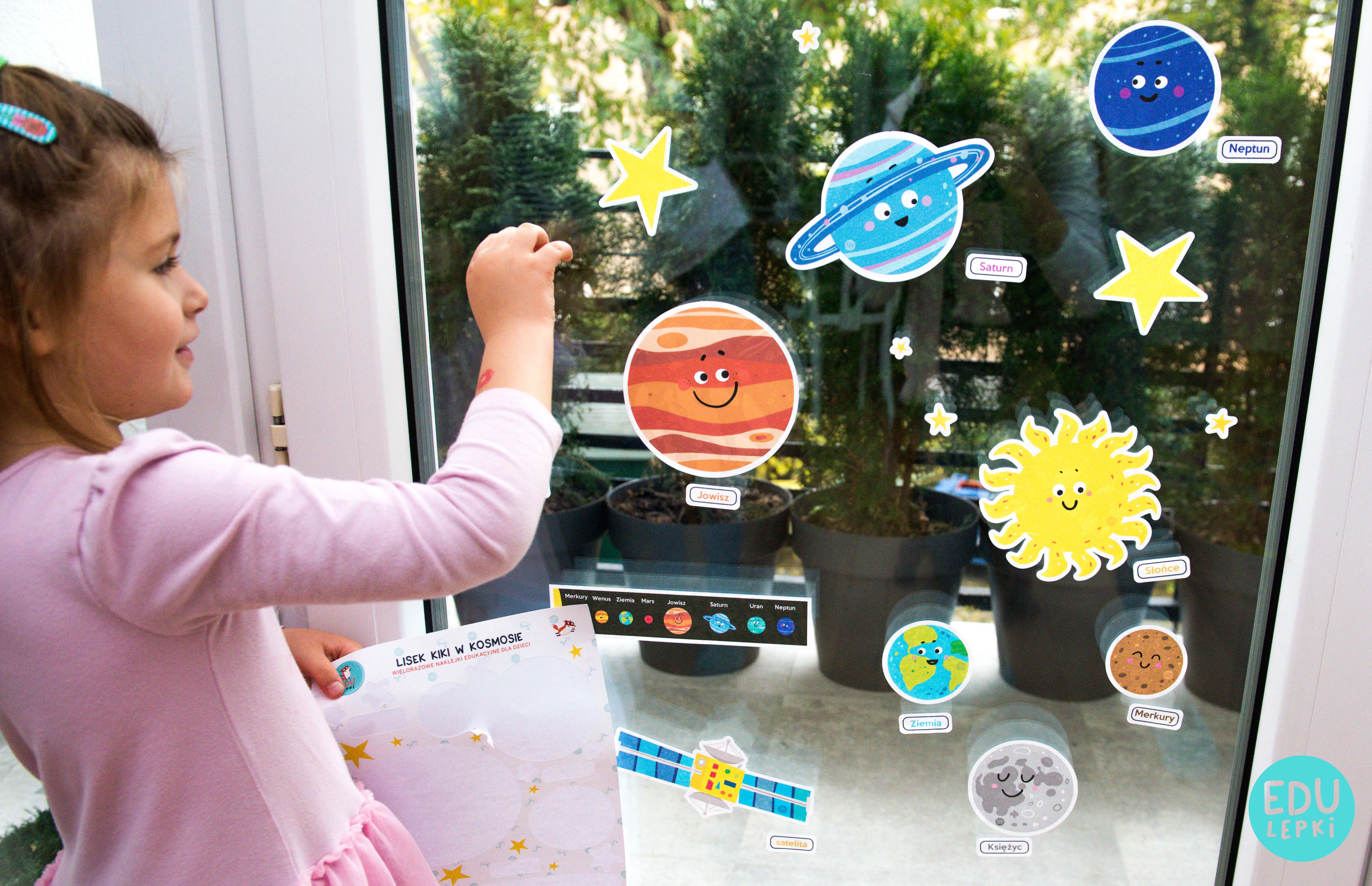 Kiki the fox in the space - edukacyjne wielorazowe naklejki dla dzieci