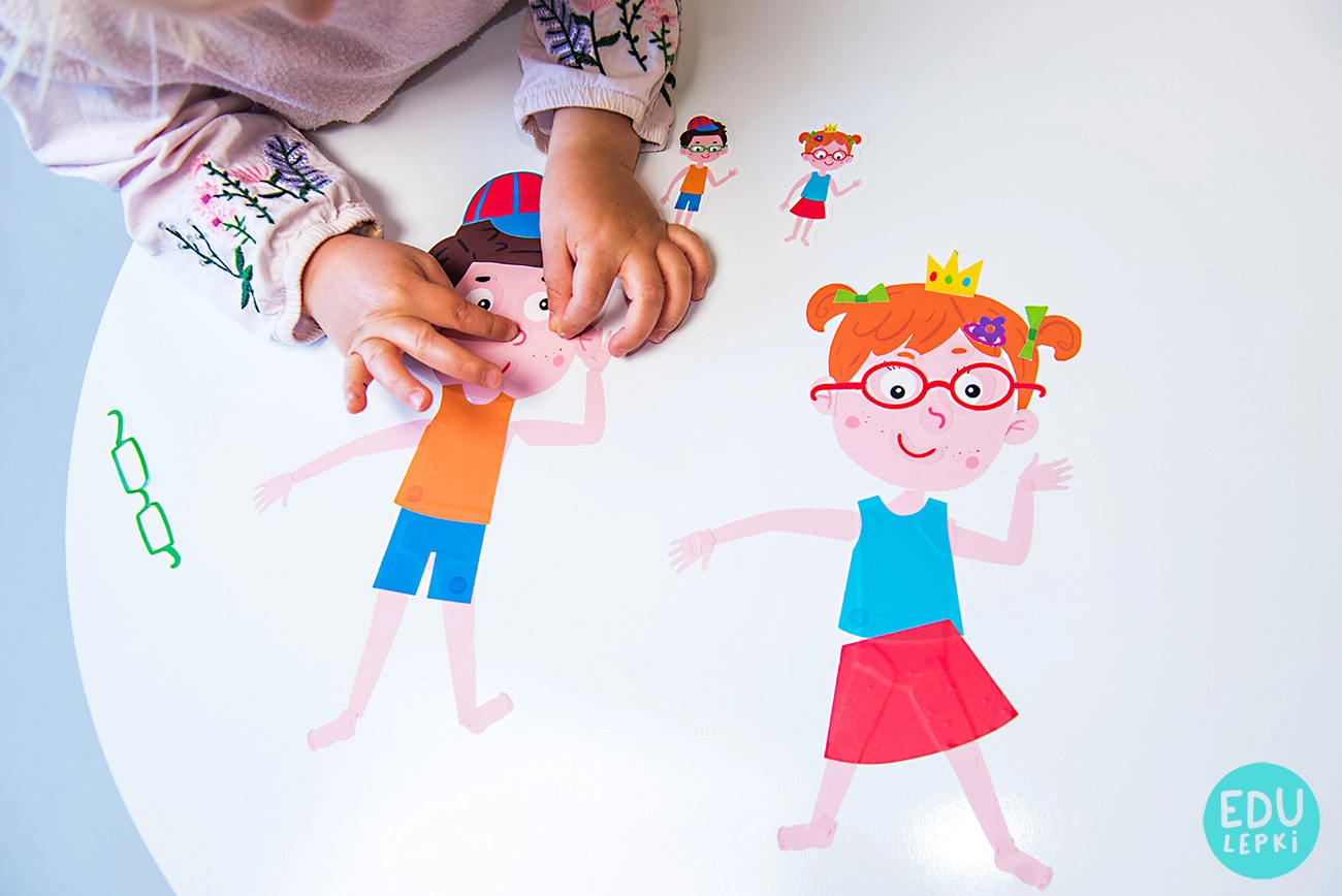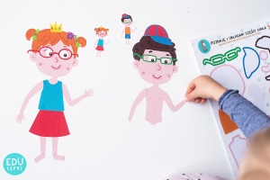 Dziecko dopasowuje części ciała tak, aby stworzyć postać dziewczynki i chłopca